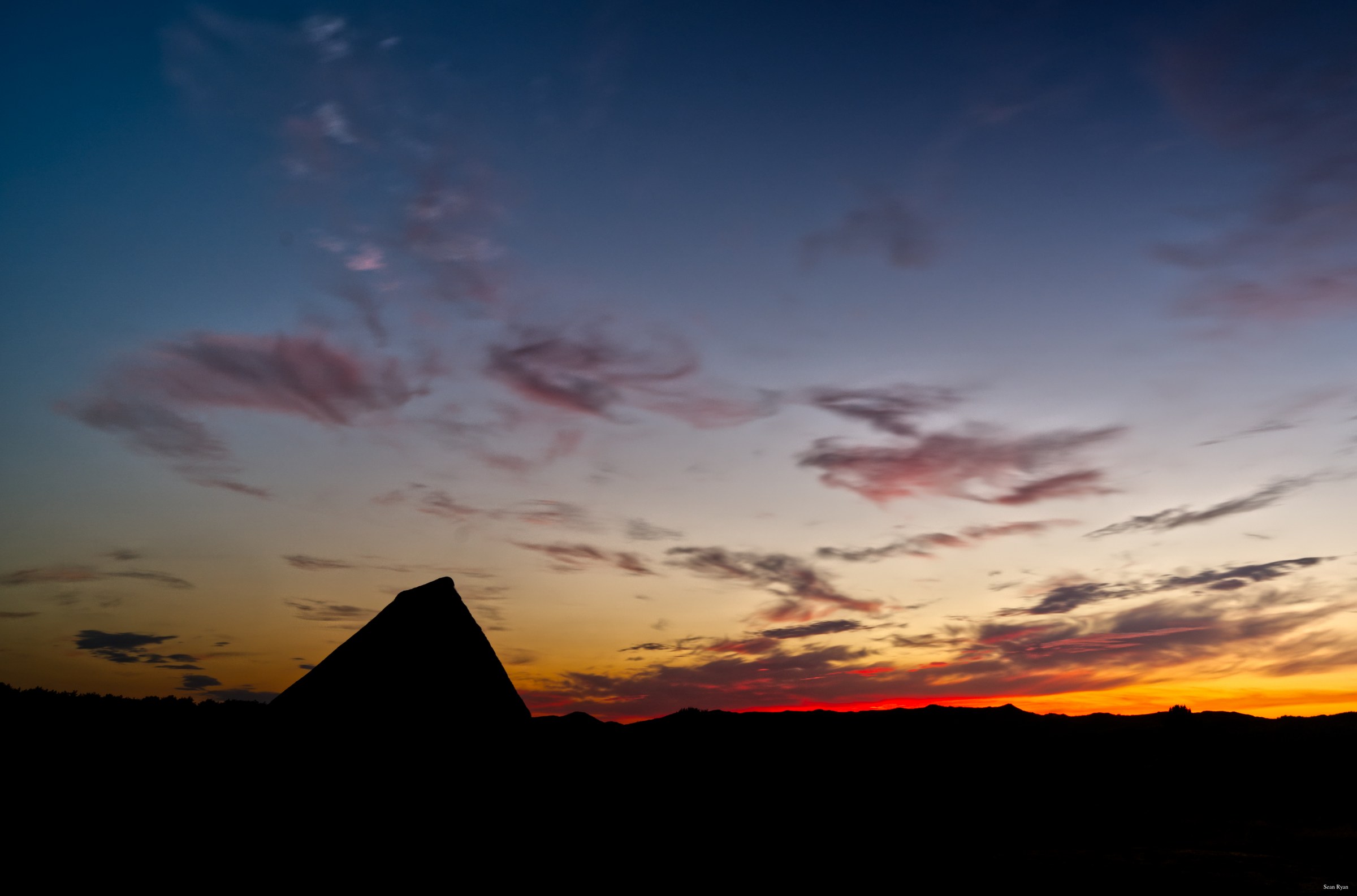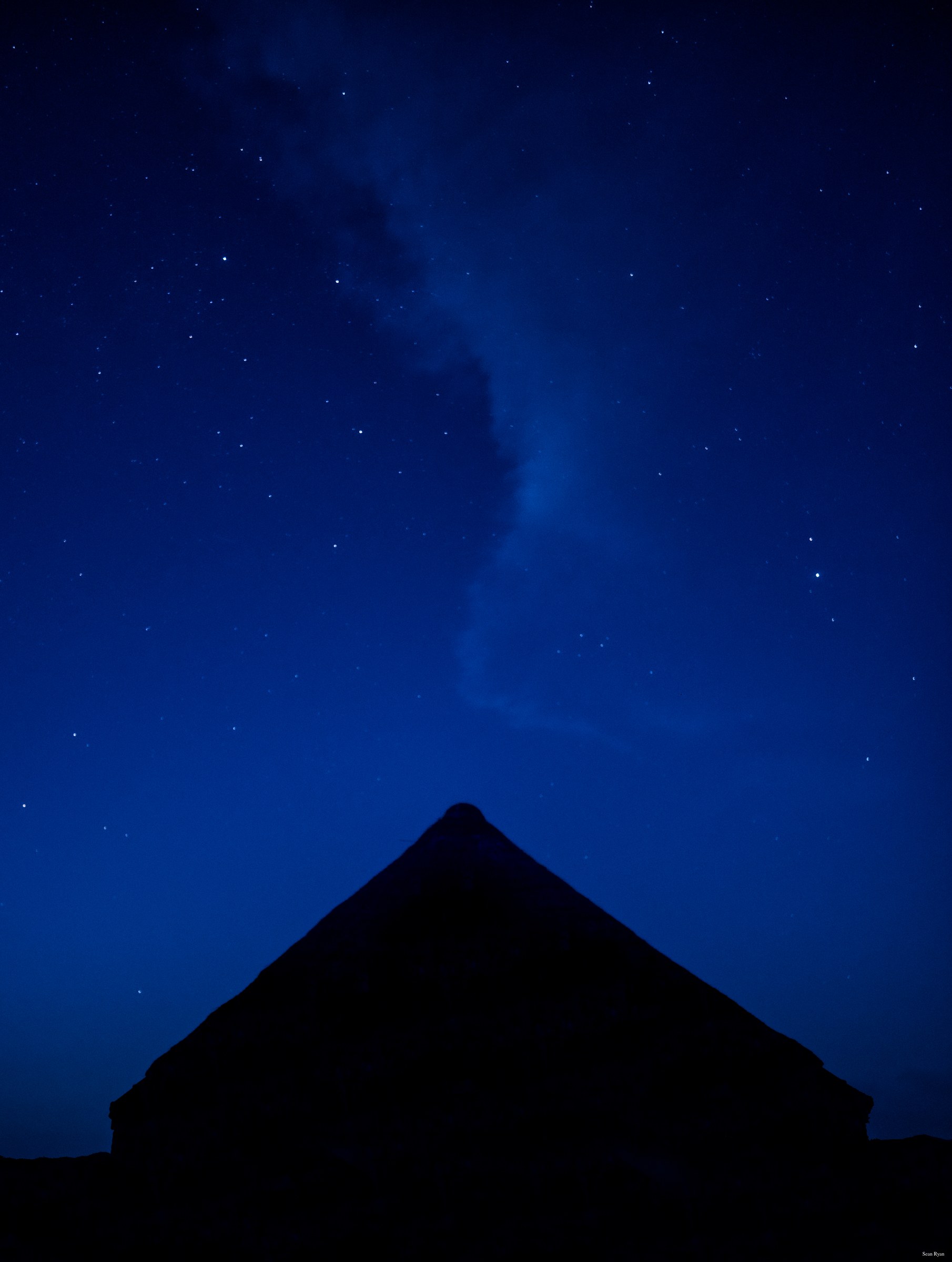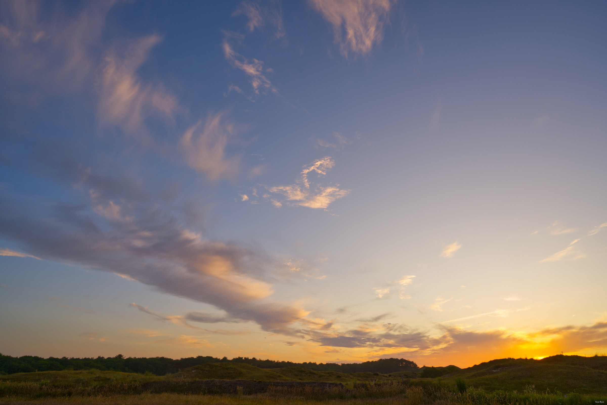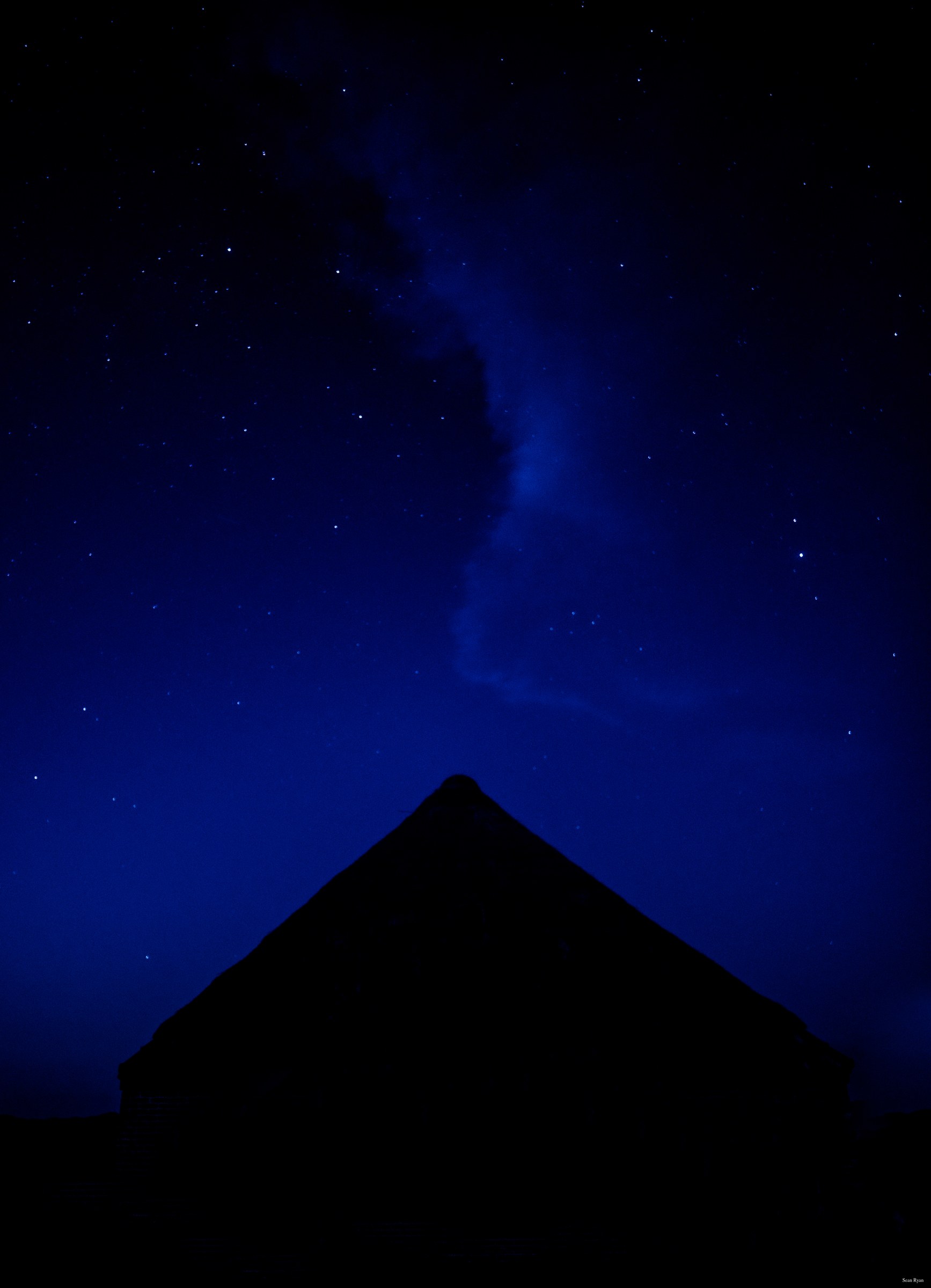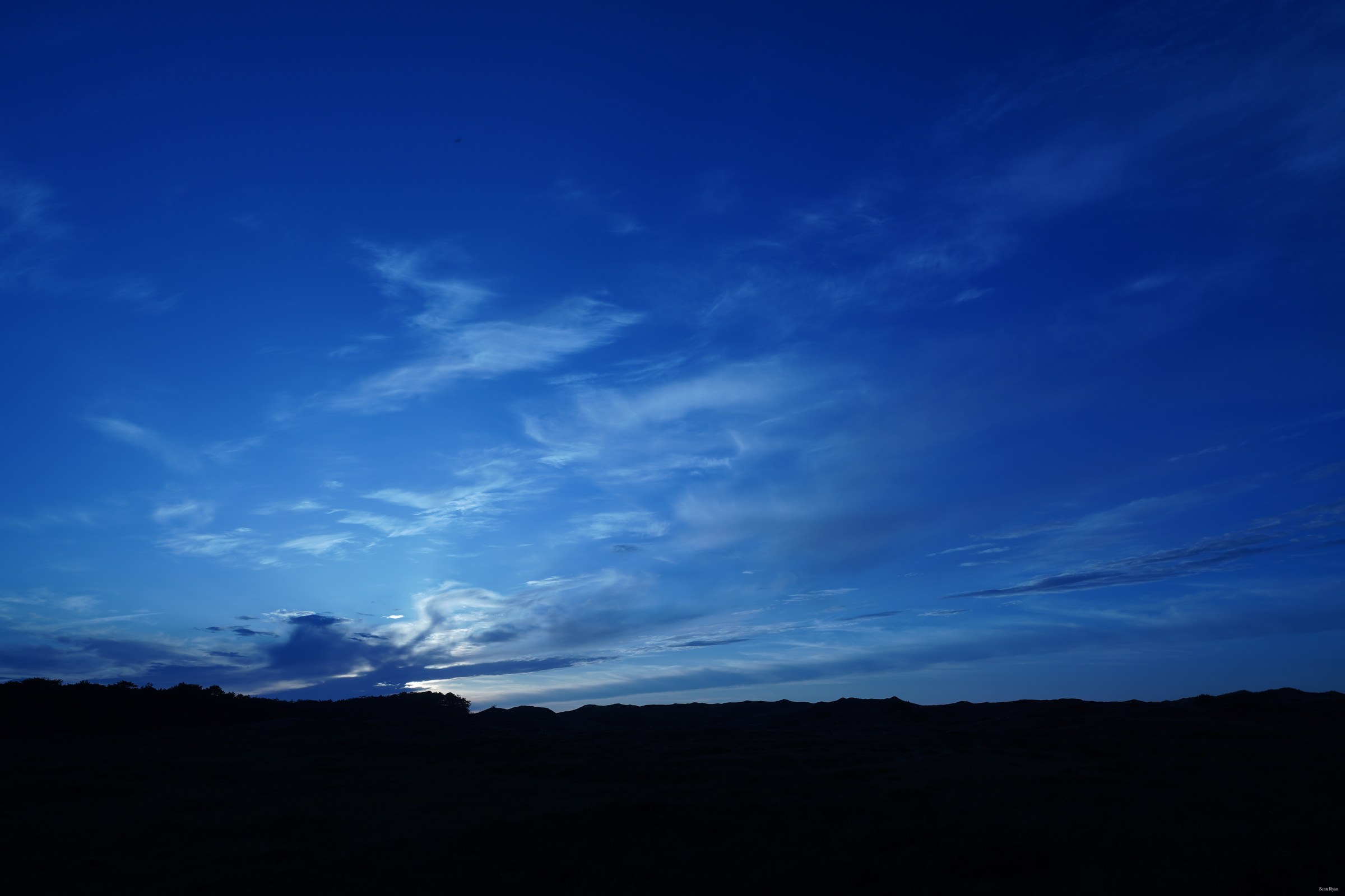 Cloud trails and night skies at a typical Texel thatched hut (schaaphuis 'sheep house'), by day, by sunset and at blue hour.