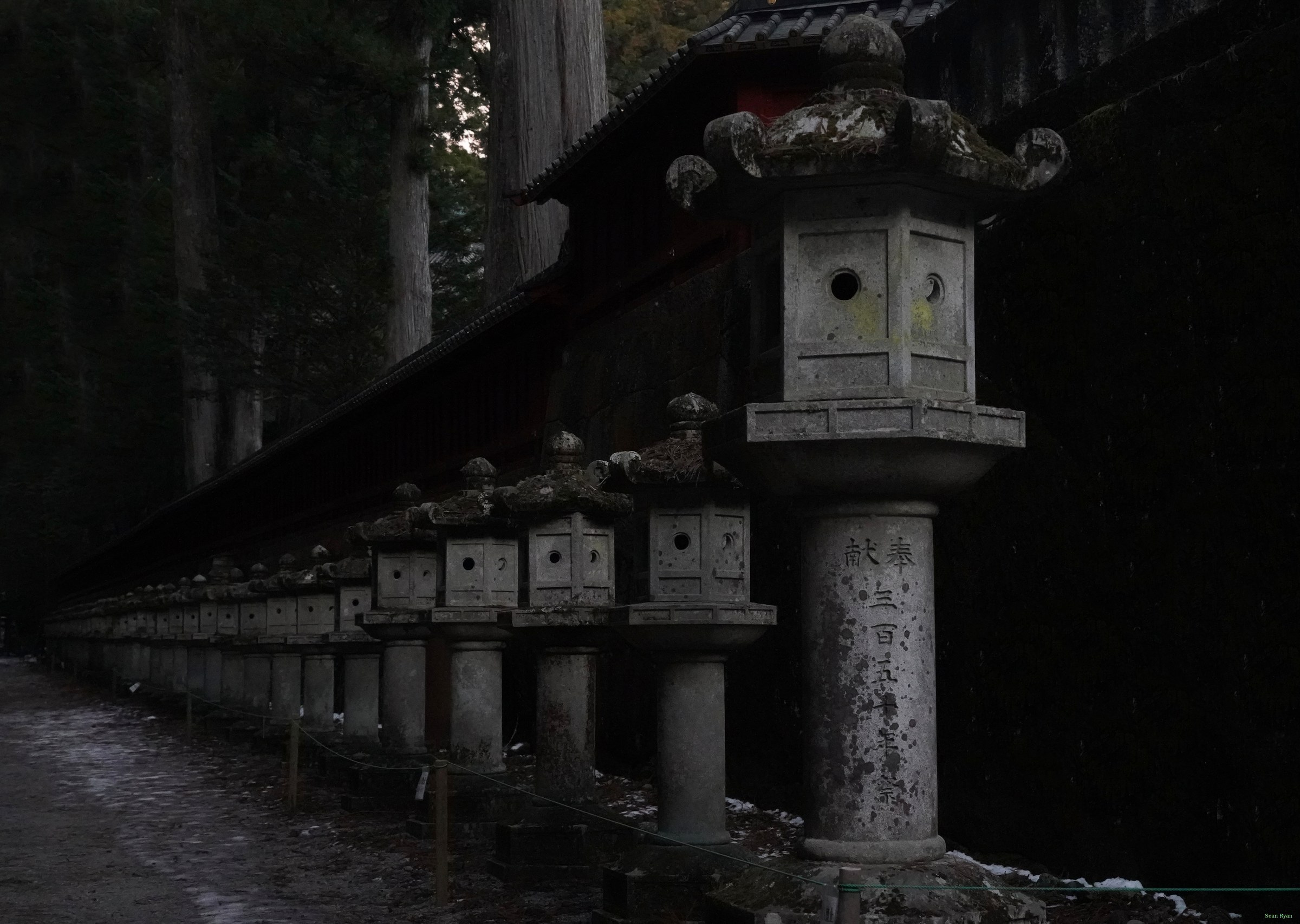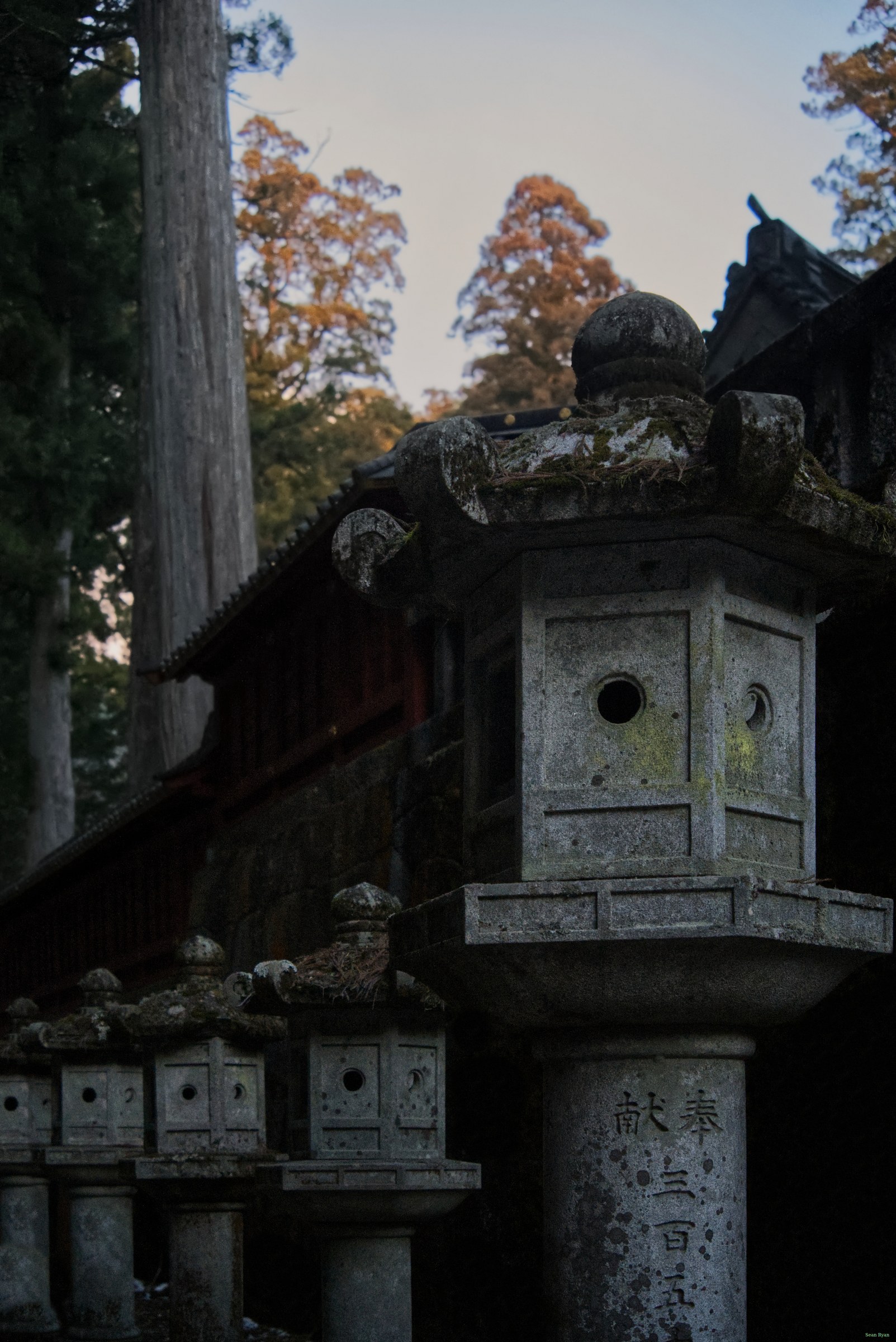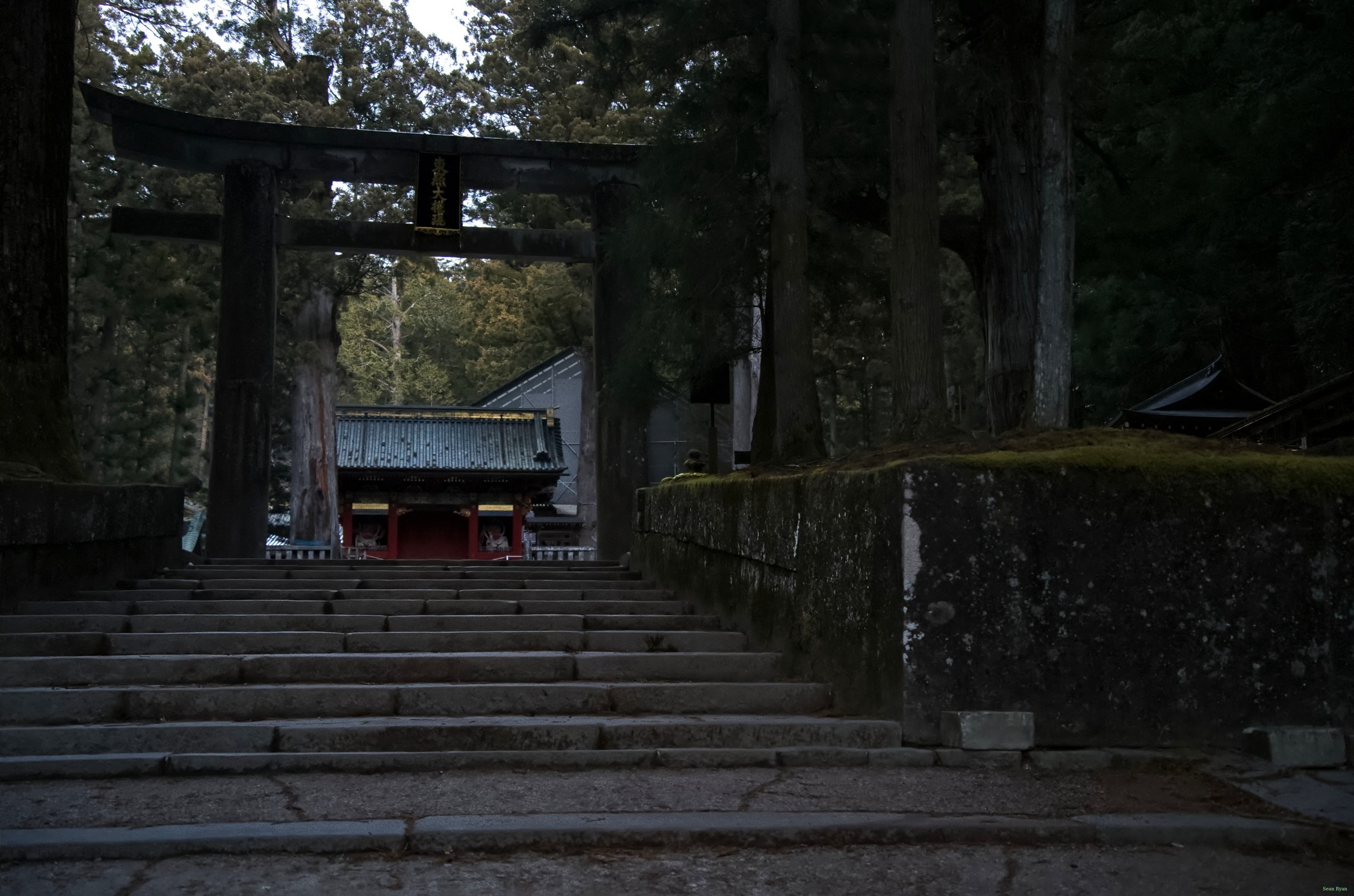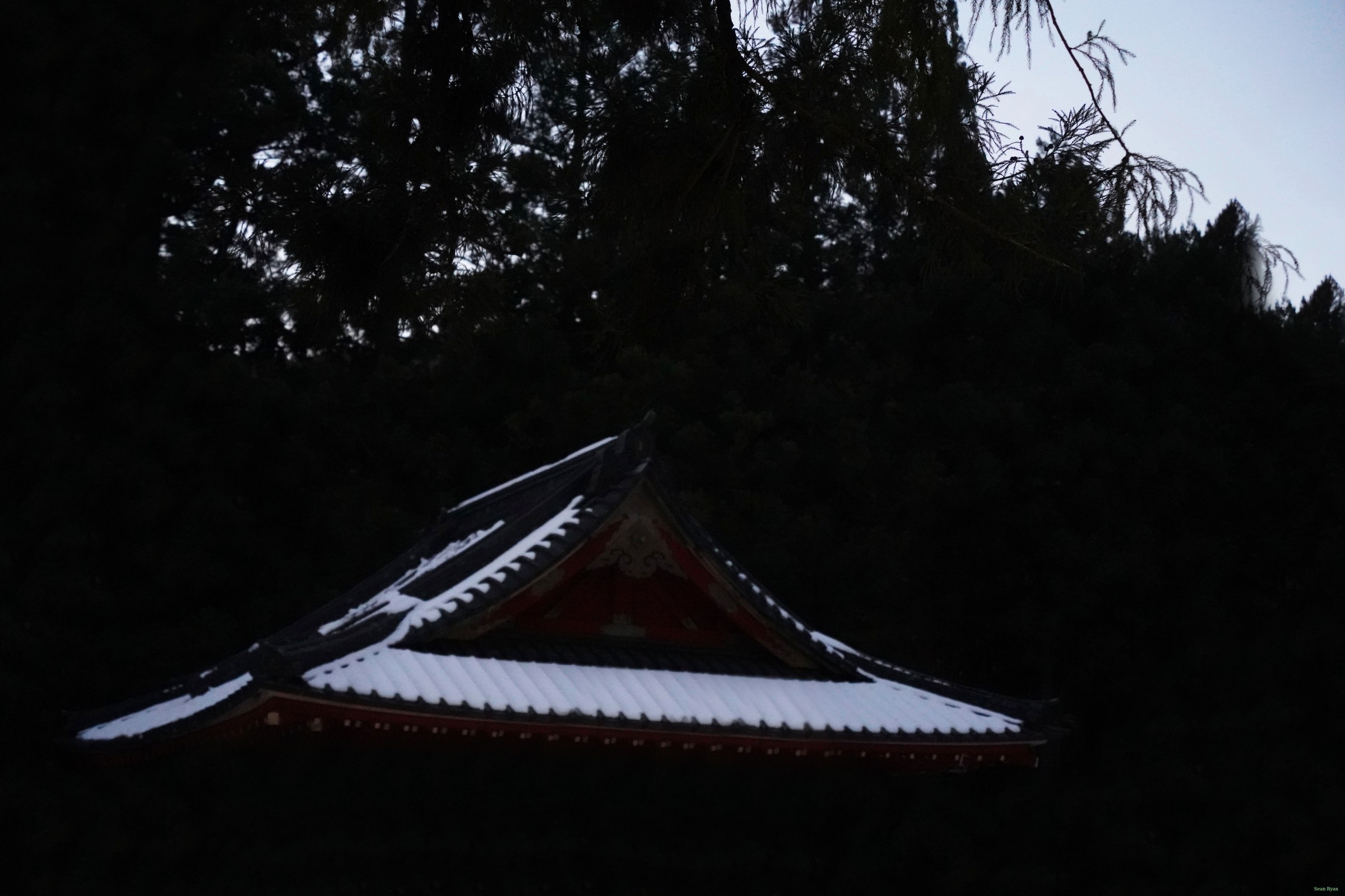 Futarasan-jinja and Haiden temple in dark cedar forests: at blue hour and early morning.