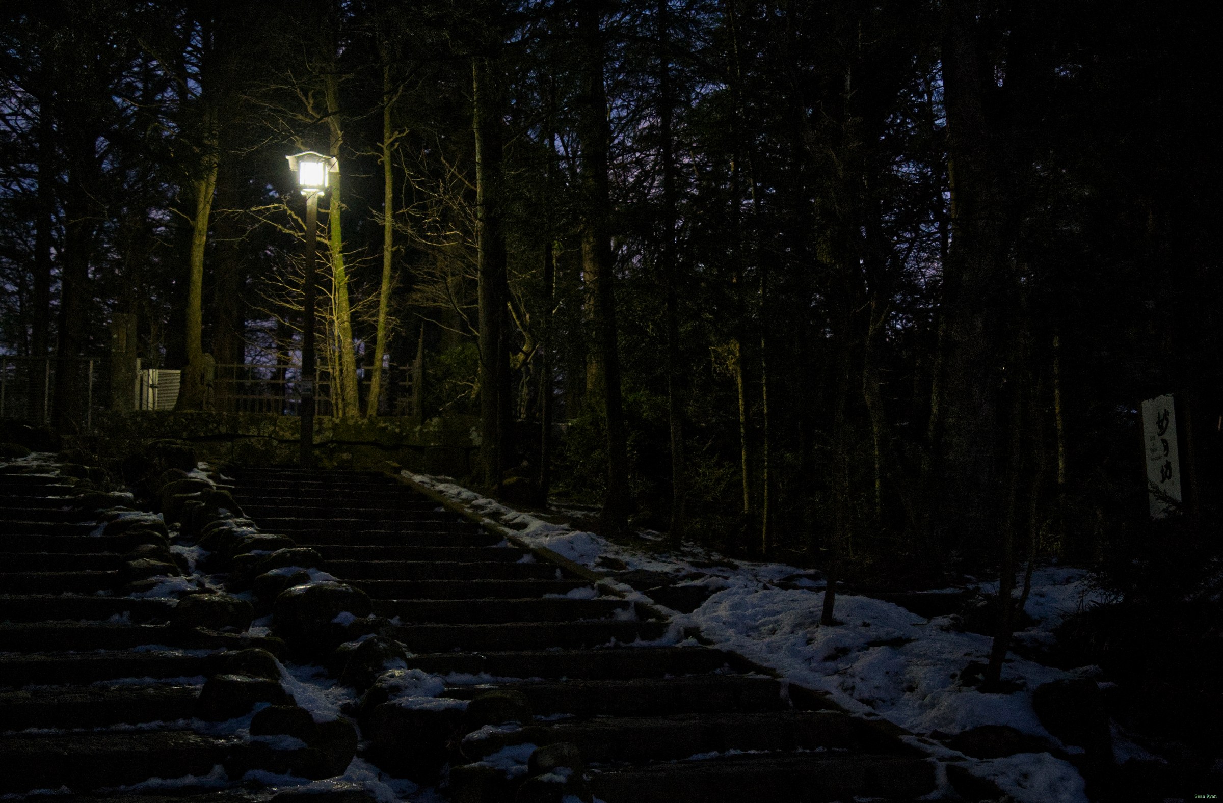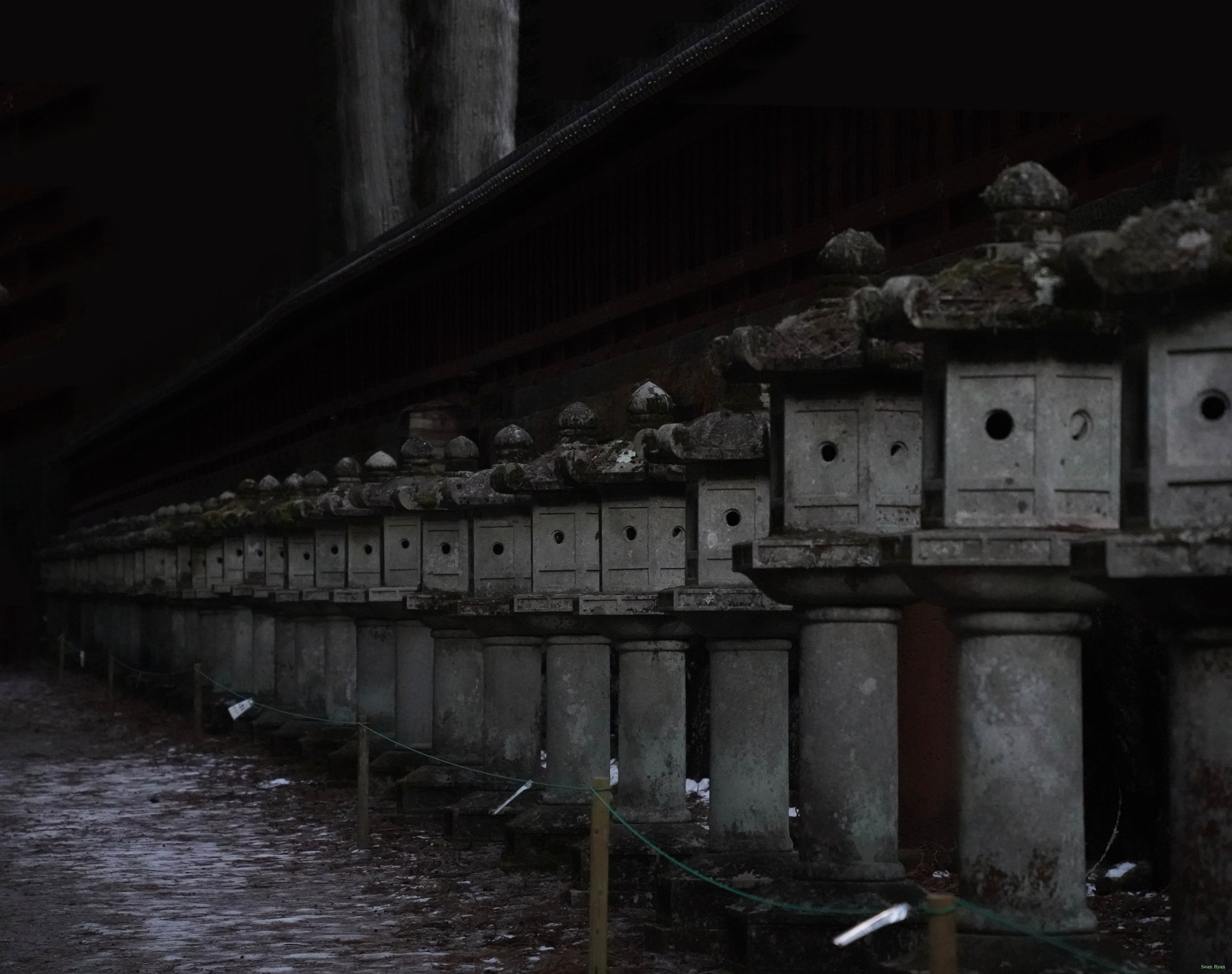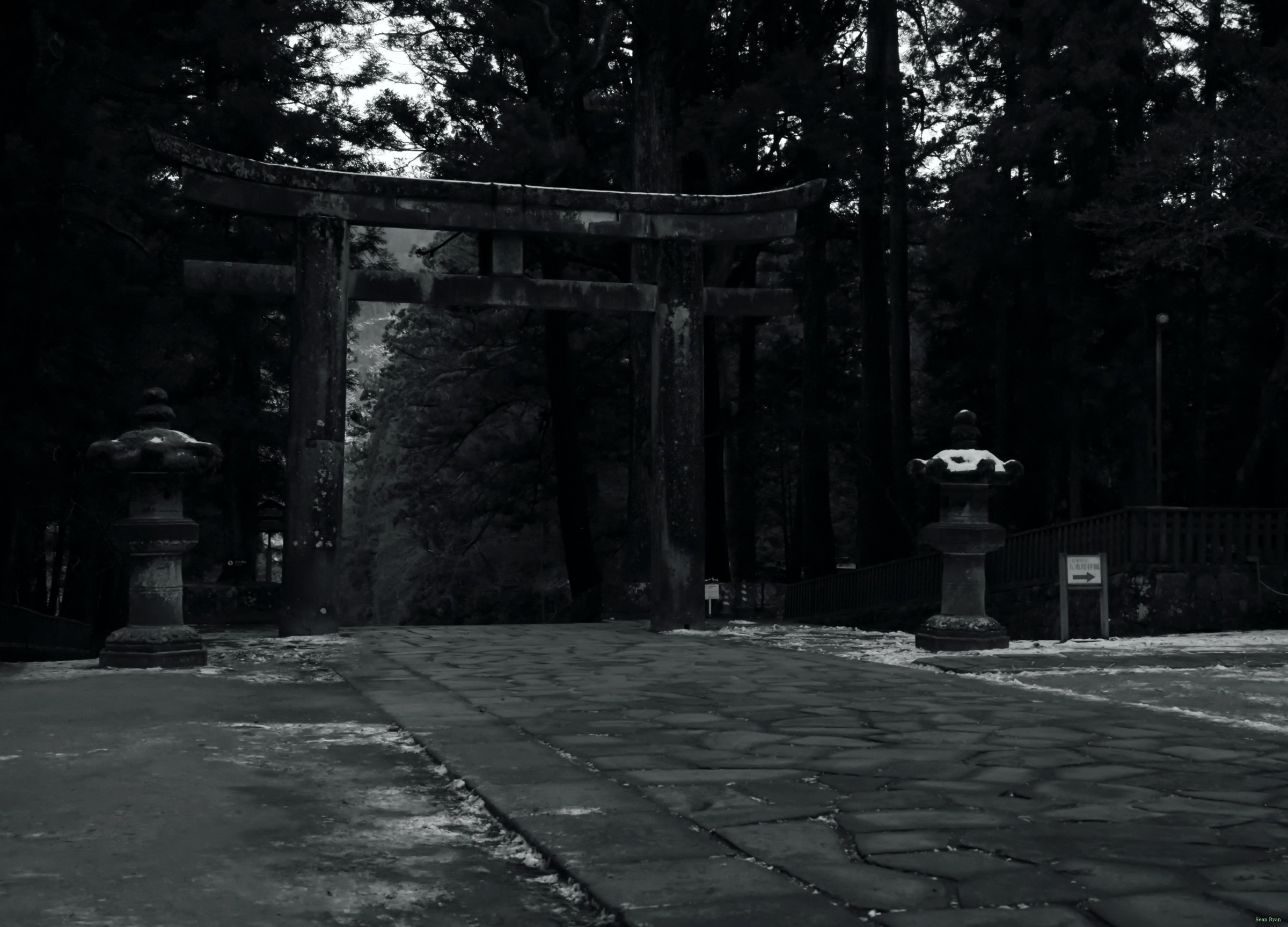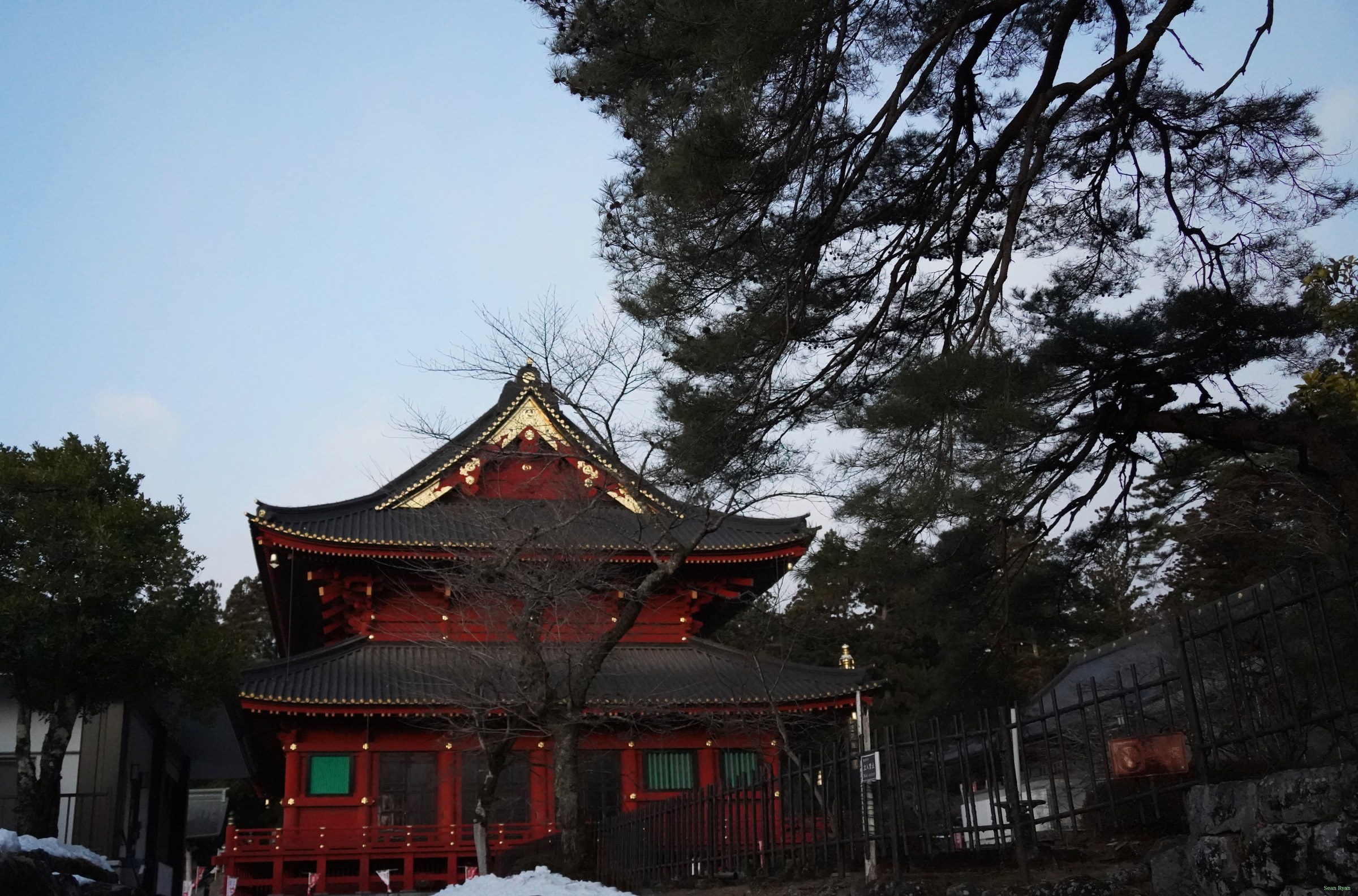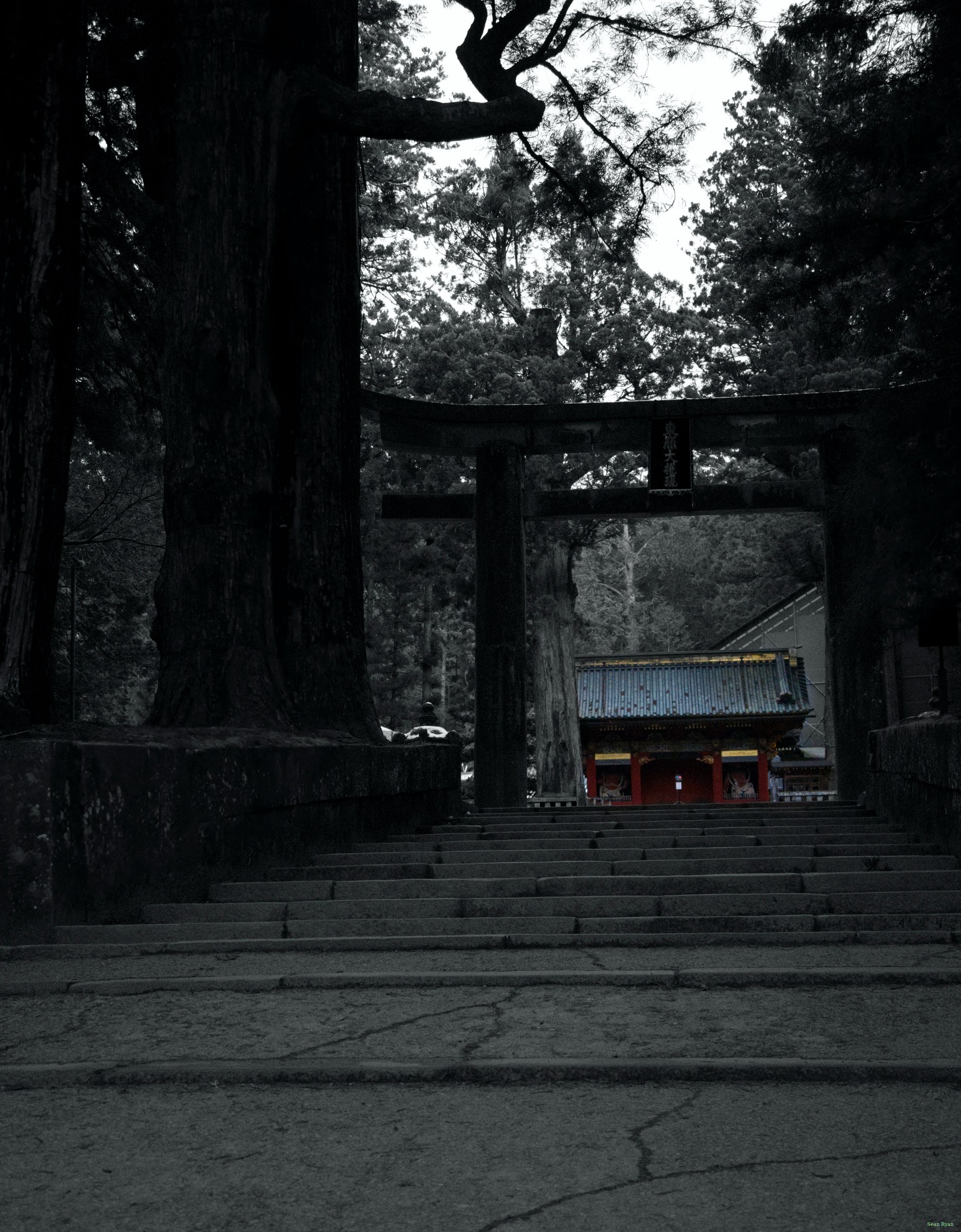 Futarasan-jinja and Haiden temple in dark cedar forests: at blue hour and early morning.