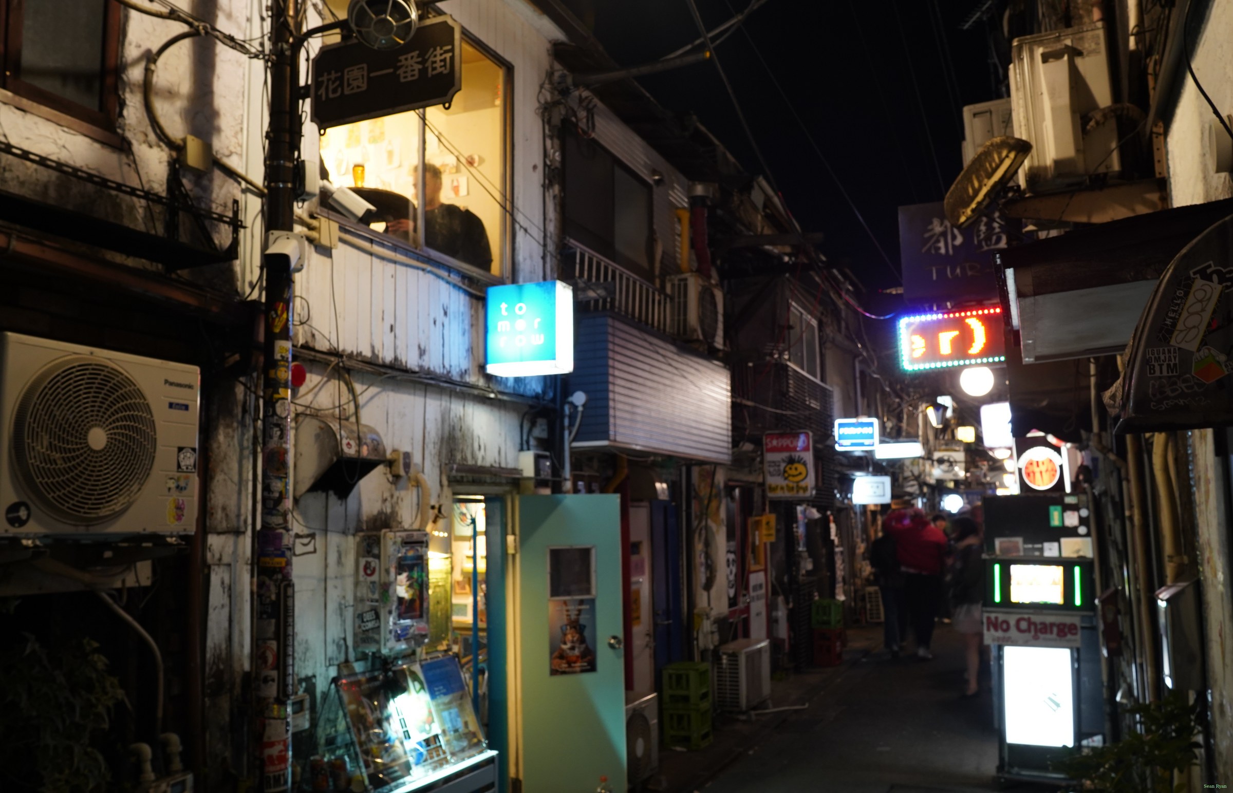 Bar and shop signs by night in the alleyways of Shinjuku, Golden Gai.