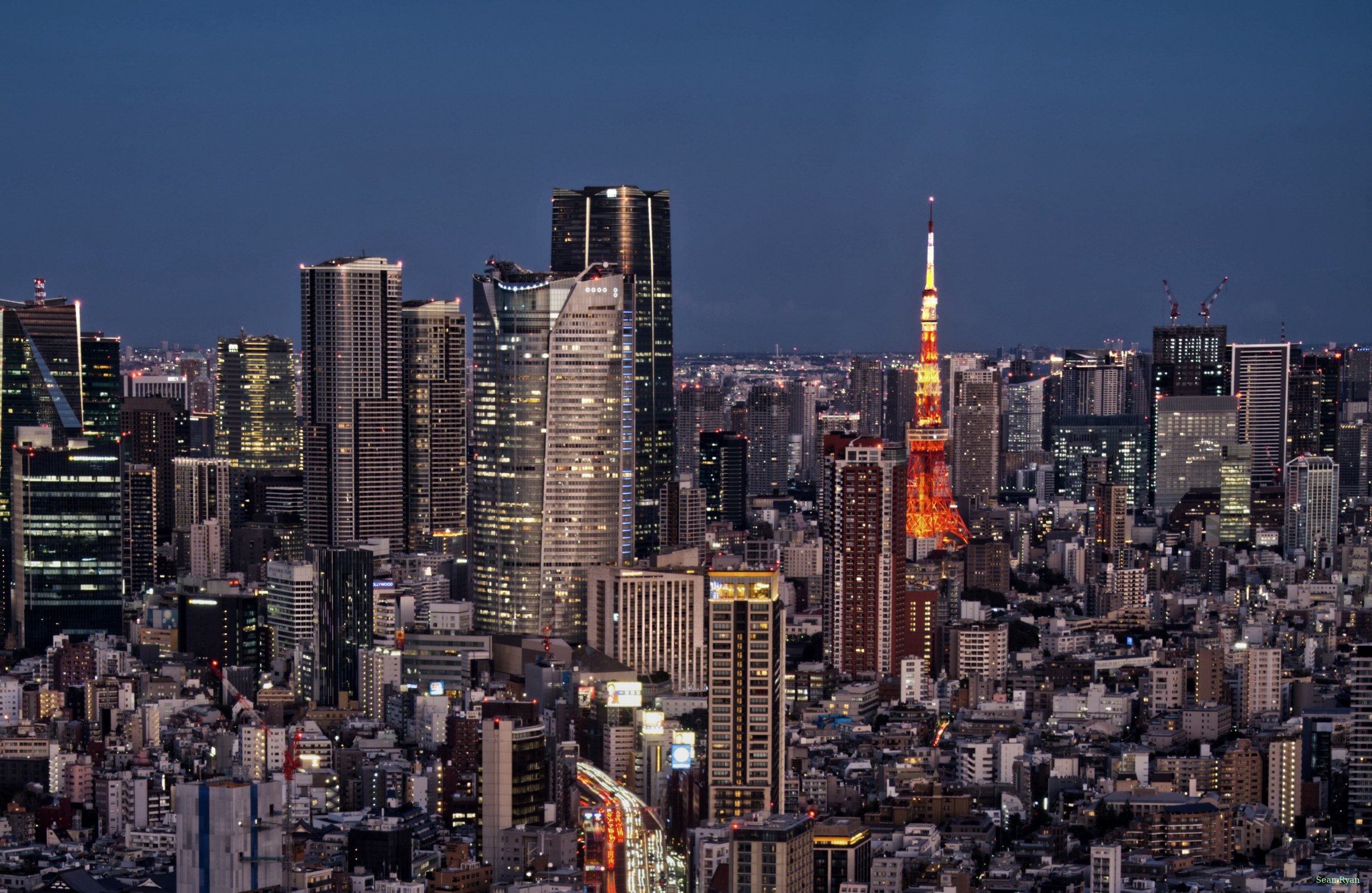 Views from Sibuya Sky at Scramble Square, Tokyo from Sunset through blue hour to night. Features Tokyo Tower and one shot of Tokyo Sky Tree.