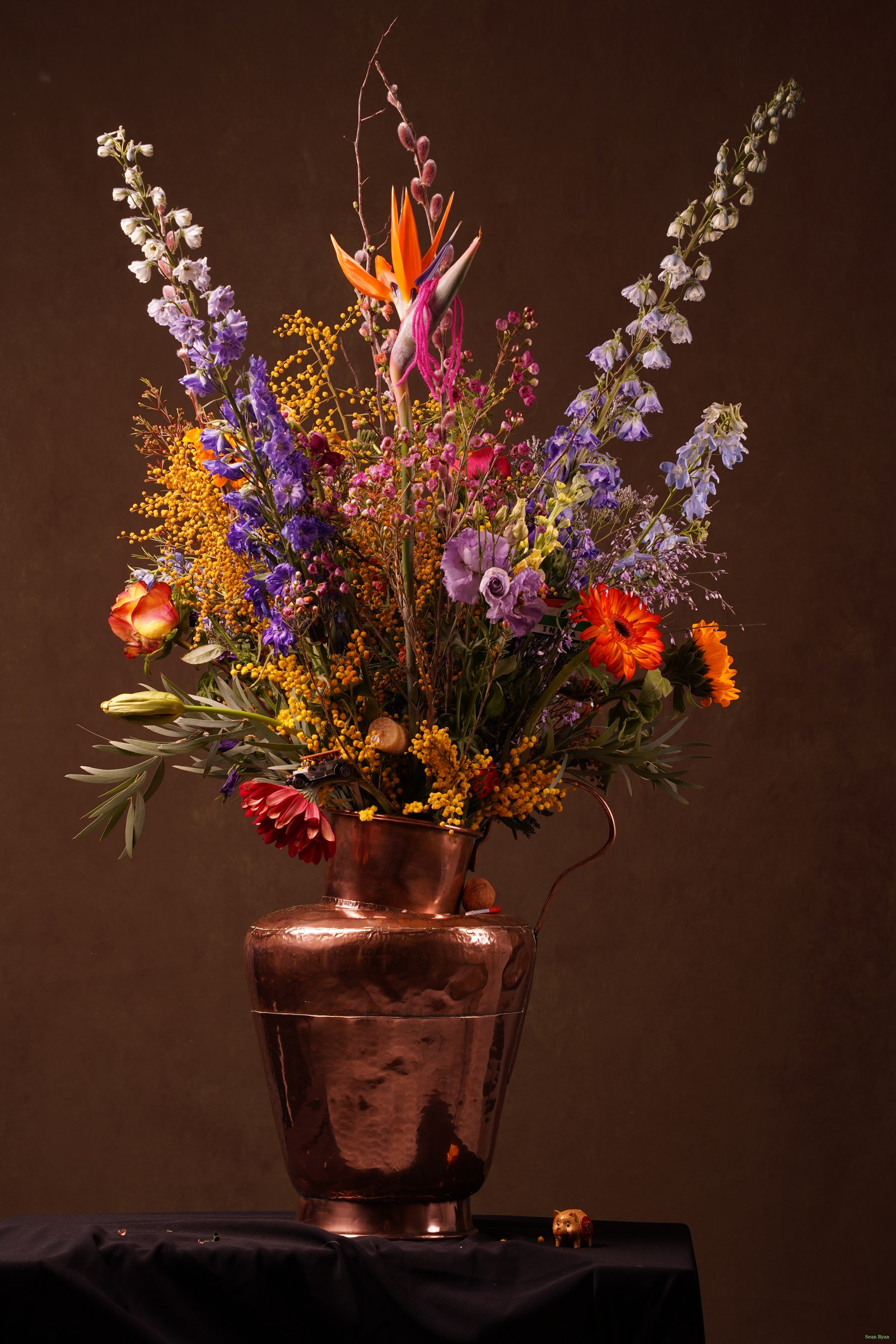 Still life shots of flowers, plants and old musical instruments taken during a workshop in a studio in Den Haag. The flower arrangement contains small personal objects hidden away, a bit like Dutch painters sometimes hid within their still life paintings.